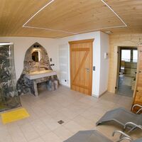 Ein Wellnessbereich mit Sauna, Infrarotkabine, Dusche und direktem Zugang zum Whirlpool auf der Terrasse runden das Wohlfühlangebot ab.