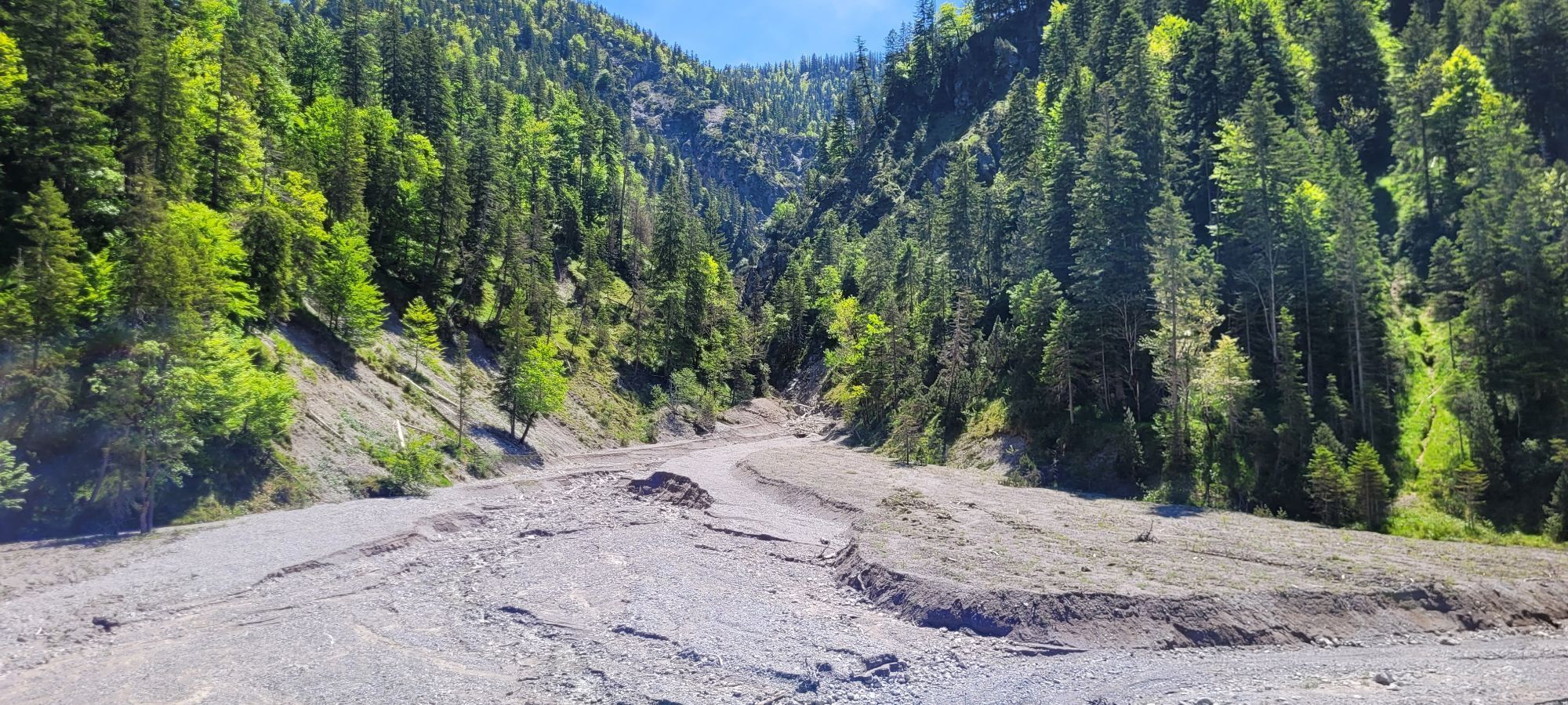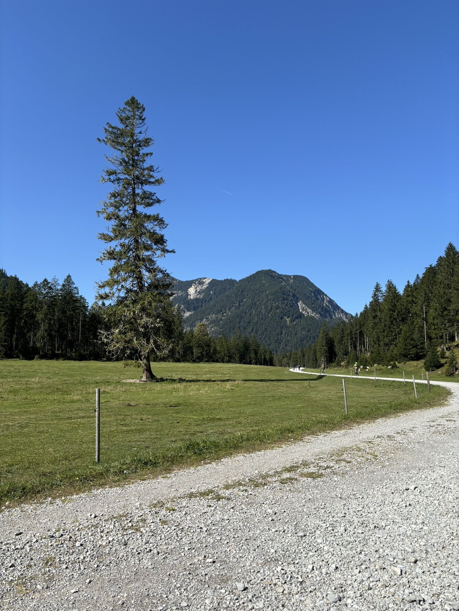Wir verlassen Grainau zur B 23 und benützen dort den Radweg nach links, entlang der Bundesstraße in Richtung „Griesen“, bis die Bahnlinie die Bundesstraße quert. Wir überqueren an diesem Bahnübergang ebenfalls die B 23 und kommen nach ca. 150 m auf den Parkplatz der „Ochsenhütte“. An einem Weidegatter an der rechten Seite beginnt nun die gute Forststraße, die uns stetig bergauf auf das Weidegelände der „Rotmoos Alm“ führt. Von hier geradeaus weiter Richtung „Graswang“, erreichen wir am Ende einer längeren Abfahrt das „Graswanger Tal“. Ab hier links haltend folgen wir der Beschilderung nach „Linderhof“. Ab dem Forsthaus Linderhof fahren wir auf der wenig befahrenen Verbindungsstraße zunächst leichter, später stärker ansteigend, bis zur Einkehr „Ammerwald Alm“. Von hier geht’s am Hotel Ammerwald vorbei, bergab zum kristallklaren „Plansee“. Dort angekommen gleich links haltend am Campingplatz und an der Schranke vorbei, auf die unbefestigte Uferstraße fahren. Am Ende des Sees, folgen wir nun wenige Höhenmeter der breiten Forststraße Richtung „Griesen“ bergauf. Nach einer kurzen Abfahrt verlassen wir diesen stetig abwärts führenden Weg entlang der Neidernach nicht mehr, bis wir in Griesen die Bundestrasse erreichen. Dort überqueren wir die B 23 und fahren beim Kiosk rechts auf den Radweg, der uns zurück nach Grainau führt.