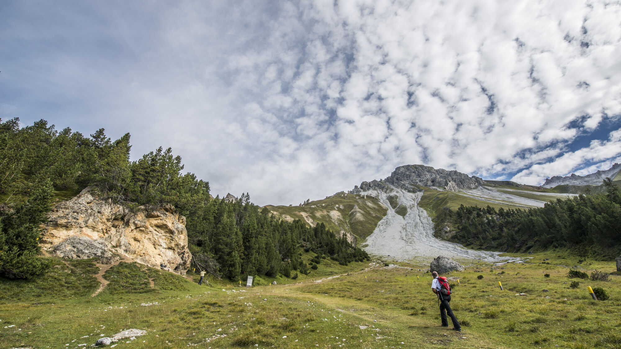 Chaussures de randonnée, vêtements chauds, protection contre le soleil et la pluie, jumelles recommandées, livret d’accompagnement « Sentier didactique », brochures FOCUS « Développement de la végétation » et « Éboulements ».