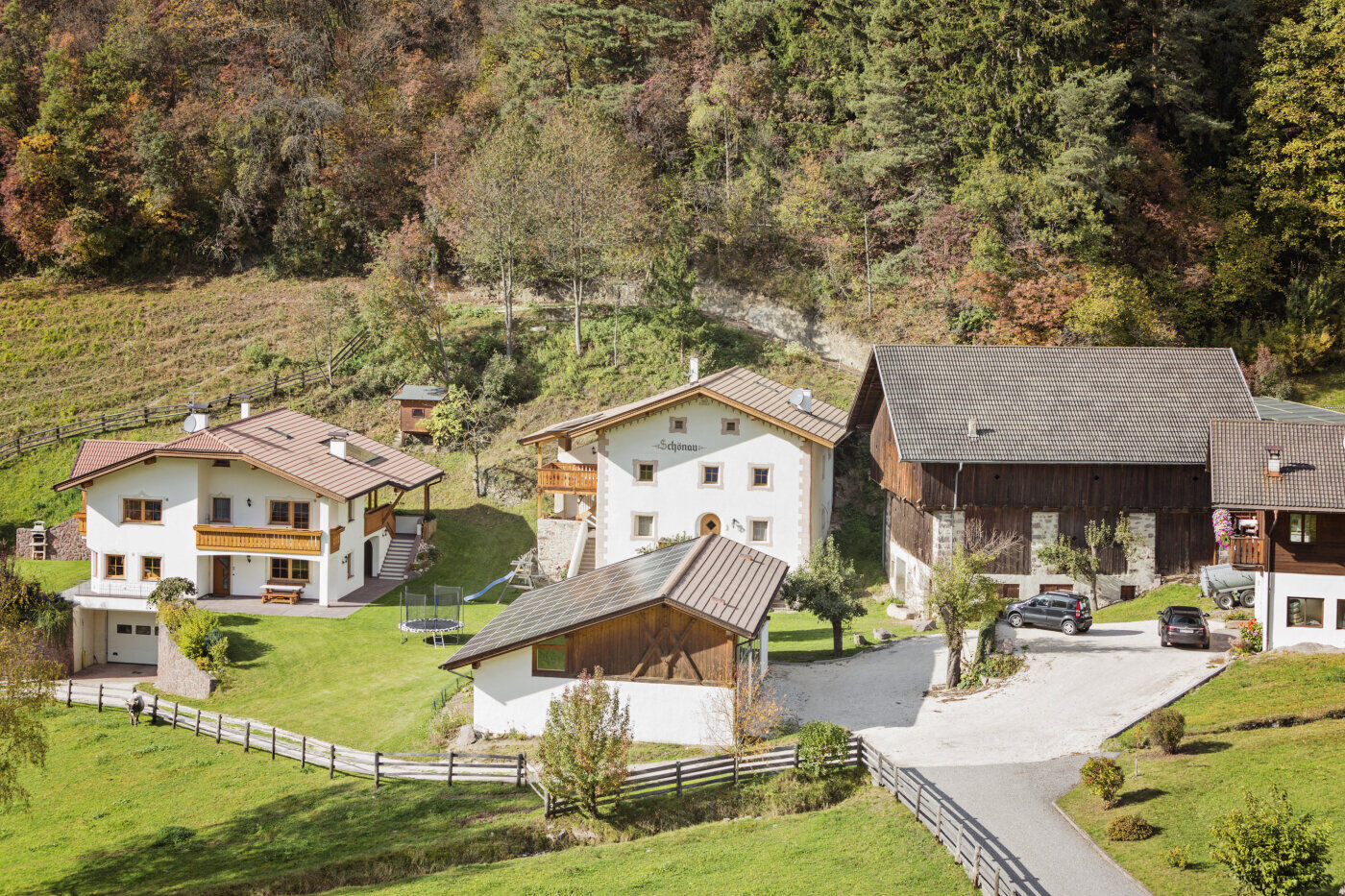 Schönau ist keine herkömmliche Ferienunterkunft, sondern eine kleine, natürliche Erlebniswelt zum Entdecken! Mitten im Grünen entstehen die beiden kleinen Apartmenthäusern, einen urigen Bauernhof, die kleine, aber gemütliche Wellnessanlage und einen Kinderspielplatz. Das Ganze garniert von einer einmaligen Kulisse von grünen Wiesen bis zum Waldrand.