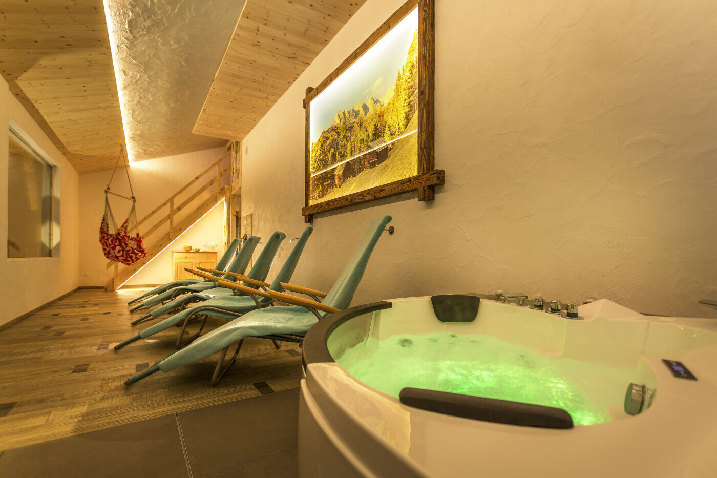 Die kleine Wellnessanlage kann kostenlos genutzt werden. Sie verfügt über eine finnische Sauna, eine Whirpoolwanne, ein kaltes Tauchbecken mit fließendem Quellwasser und einen wohltuenden Heu-Bett.