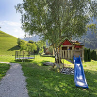 Die große Spielwiese mit Kinderspielplatz ermöglicht den Eltern sich zu entspannen während sich die Kinder in aller Sicherheit austoben können.
