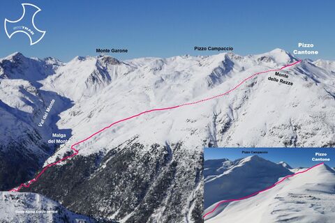 De Campacciolo, à proximité de l'Albergo Forcola, suivre la route jusqu'au pont sur le ruisseau Spol, le traverser et monter en passant bien à droite de la malga de Campaccio. Après quelques centaines de mètres, on traverse un petit pont sur la droite et on monte sur la petite route qui monte avec plusieurs virages en épingle à cheveux en direction du Val del Monte. Arrivé à la lisière du bois, toujours sur la petite route, continuer à gauche pour arriver à proximité de la malga del Monte. De là, en suivant une série de petites vallées et de courtes pentes en direction du nord, on tourne légèrement à droite, en passant sous les pentes sud du Monte Campaccio, et on remonte toute la vallée, qui se referme en amphithéâtre à la fin. En continuant vers la droite, en grimpant un dernier tronçon raide, on atteint le sommet.