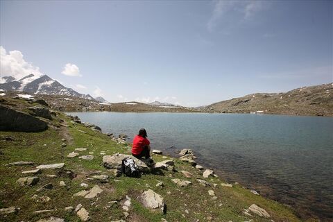 From the Ghiacciaio dei Forni Hotel take paths S528 and S555 up through an unspoilt forest of Swiss pine, one of the finest in the Stelvio National Park. Above the Baite dei Forni the trail levels off and heads west on a service road to the mountain huts of Pradaccio di Sopra. Enter the Valle della Manzin and take path S575 on the right towards Monte Forni. At an altitude of 2,500 metres, the trail zigzags up a steep grassy slope past the large rock, Sasso Prealda. It continues up a moraine ridge, grassy in parts, among rocks and debris to reach the Manzina Lake, with magnificent views over most of the Forni basin, with the peaks reflected in the still waters of the lake.