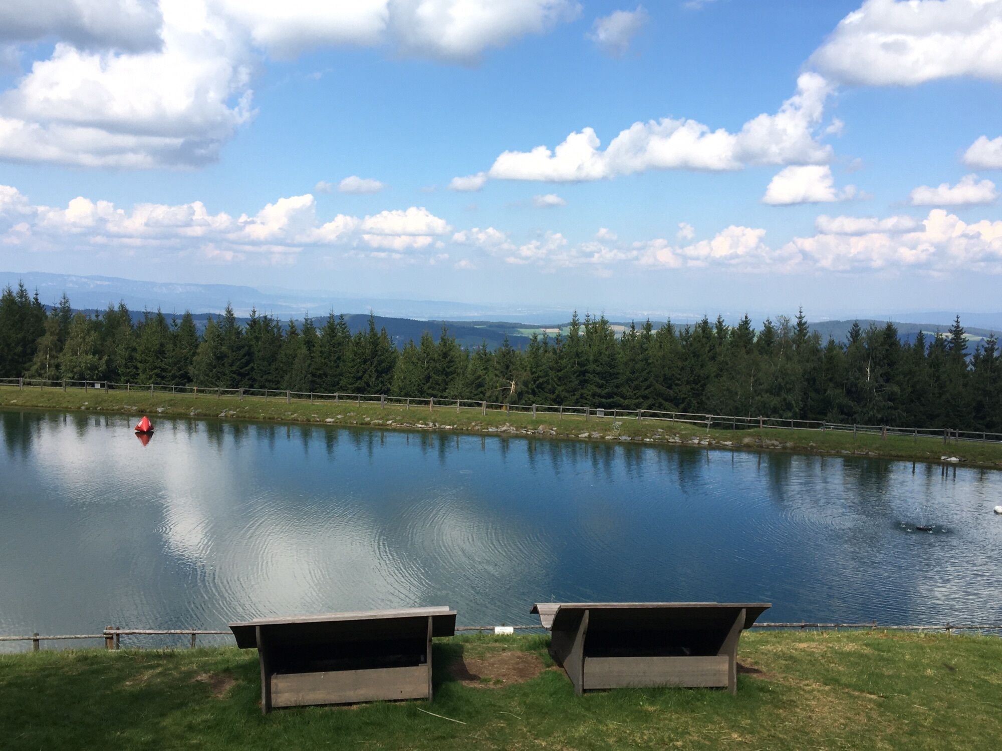 Start: Parkplatz Sommerrodelbahn und der Pension Orthof in St. Corona am Wechsel - Herrgottschnitzerhütte - Gipfelkreuz Kampstein - Kampsteiner Schwaig - Panoramateich Hanessen - Parkplatz