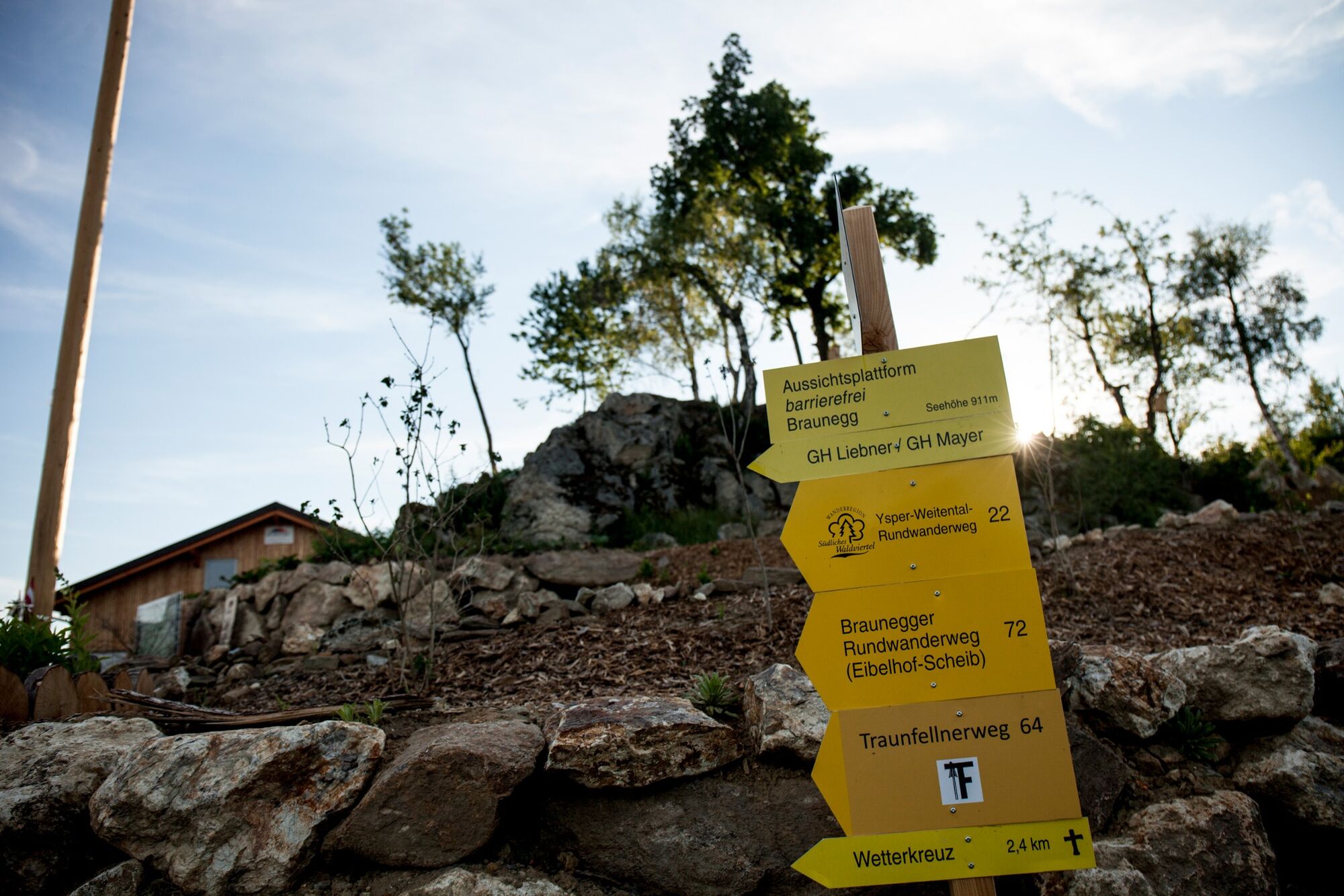 Start ist in Braunegg beim FF-Haus, über die Asphaltstraße (1 km) geht es Richtung Muckendorf links bei der Kreuzung und gleich wieder rechts in die "Primassen" (Wald), die nächsten Kilometer sind Wald- und Wiesenwege. Über ein kurzes Stück asphaltierten Güterweg erreichst du die Quelle. Nutze den Augenblick und höre die Natur. Retour geht's wahlweise über die Asphaltstraß im Scheiber Wald oder den Wiesenweg zurück. Schlussendlich erreichst du die Aussichtsplattform in Braunegg. Noch 300 Meter zum Startpunkt im Ort.