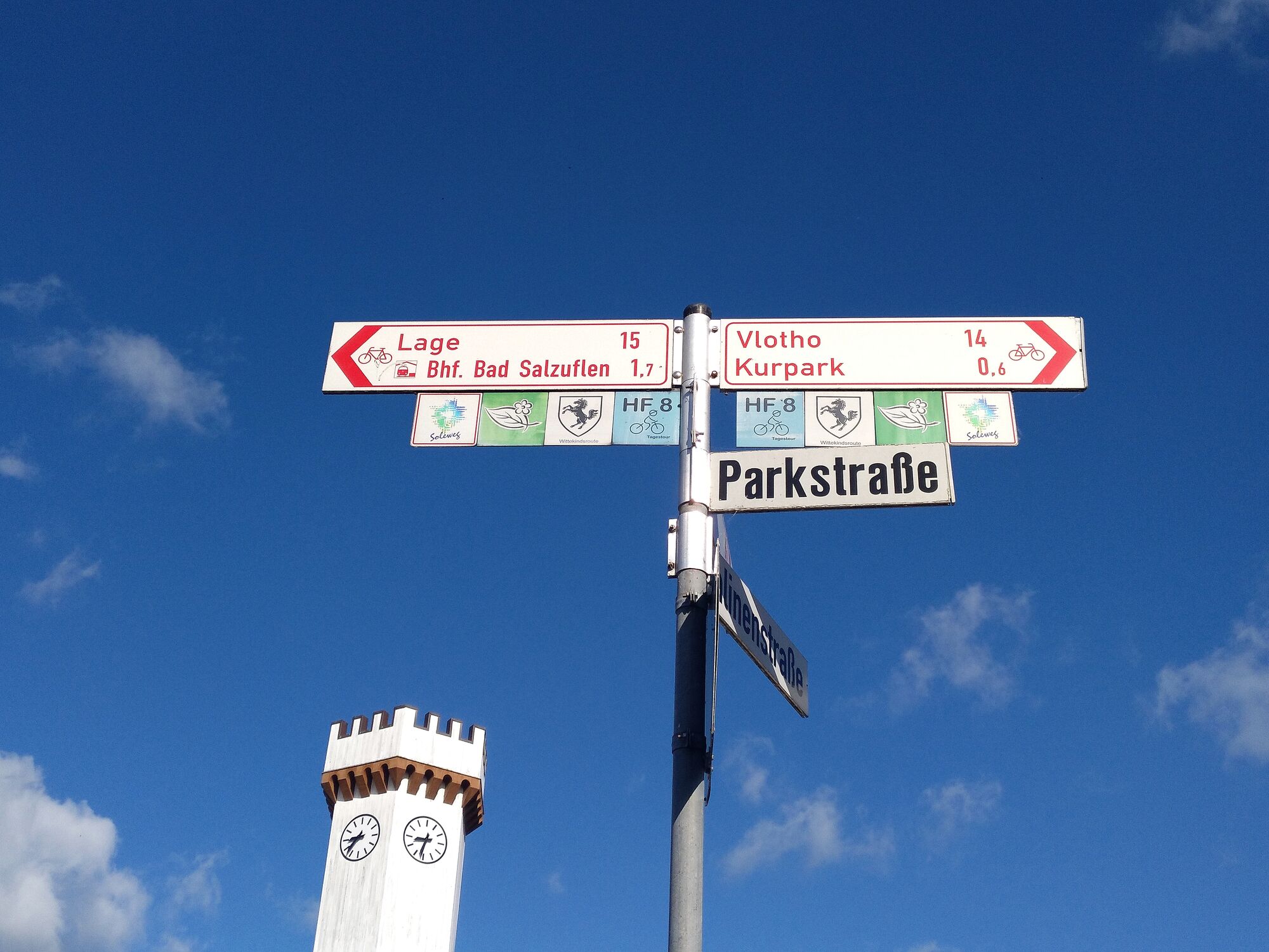 Nach Erreichen des nördlichsten Punktes in Valdorf-Vlotho besteht die Option eines Abstechers durch die Innenstadt Vlotho bis zu den Weserauen mit geschützten Naturräumen an ihren Ufern. Die Rückfahrt nach Bad Salzuflen erfolgt durch das Naturschutzgebiet an der Glimke.