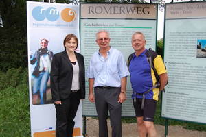 Während Sie die Römerstadt Wels hinter sich lassen – immer noch direkt am linken Traunufer bleibend – radeln Sie nun auch einmal an teils lauten Industriegebieten vorbei, allerdings ohne von deren Verkehr gestört zu werden – nach rund 2,5 km ein paar Meter nach links versetzt, aber weiter autofrei – aufpassen muss man nach weiteren anderthalb Kilometern an der Müllverbrennungsanlage: Der Römerradweg bleibt unten am Fuß des Dammes und führt erst kurz vor dem Werkstor rechts vorbei – am Wasserkraftwerk Marchtrenk vorbei und unter der Autobahnbrücke her bis zur Verzweigung nach Marchtrenk.