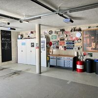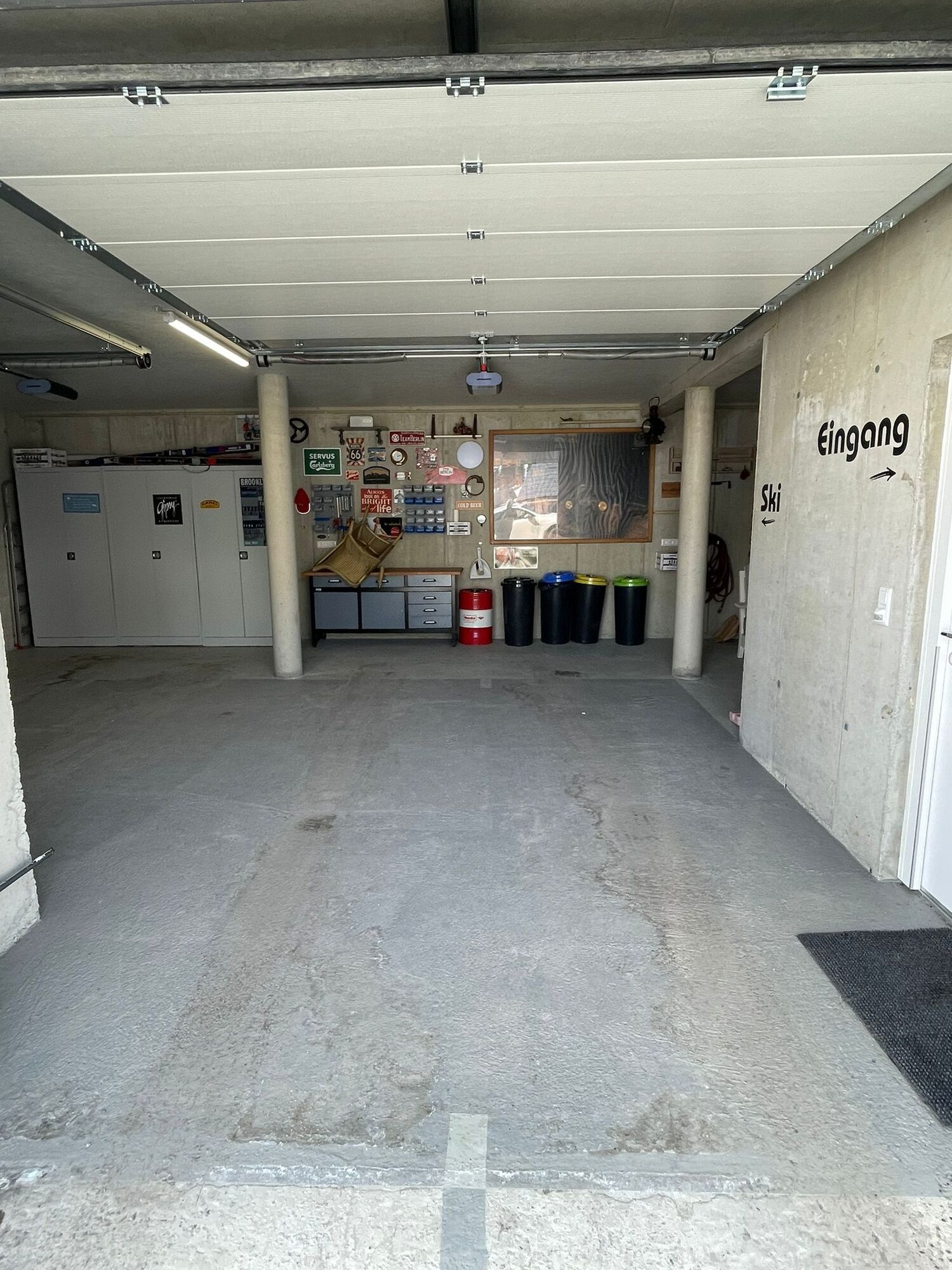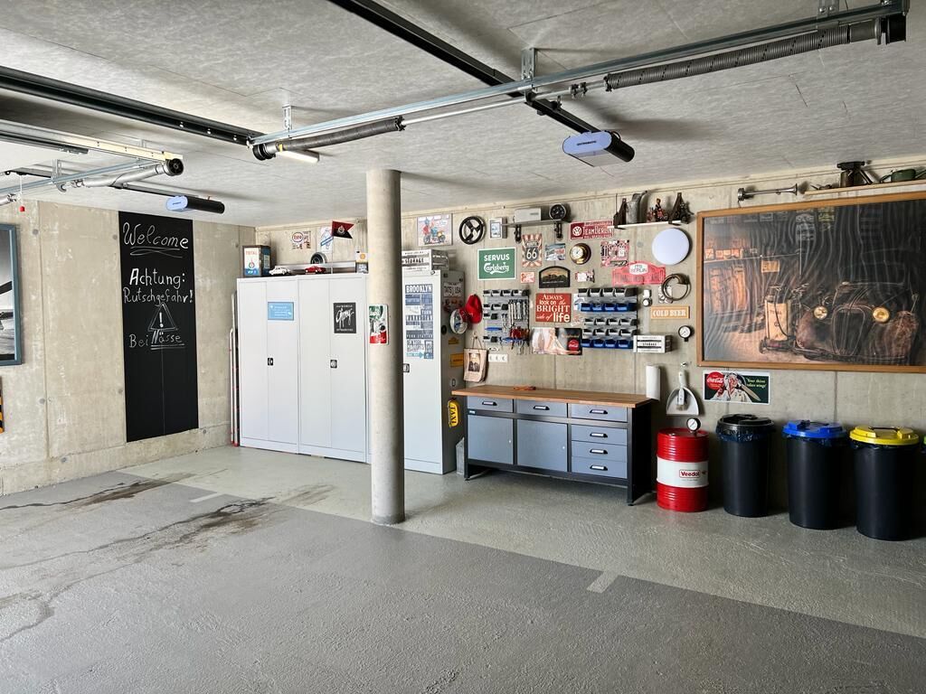 - Doppelgarage mit Werkbank und Skihalterungen