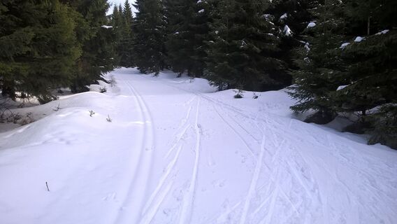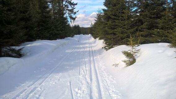 von Weitersglashütte auf der Kammloipe Richtung Schöneck, dann Abzweig zur KLM (links), nach dem Anschluß links Richtung Prebuz/Jeleni, noch vor Jeleni links Verbindungsloipe zur Kammloipe benutzen, auf...