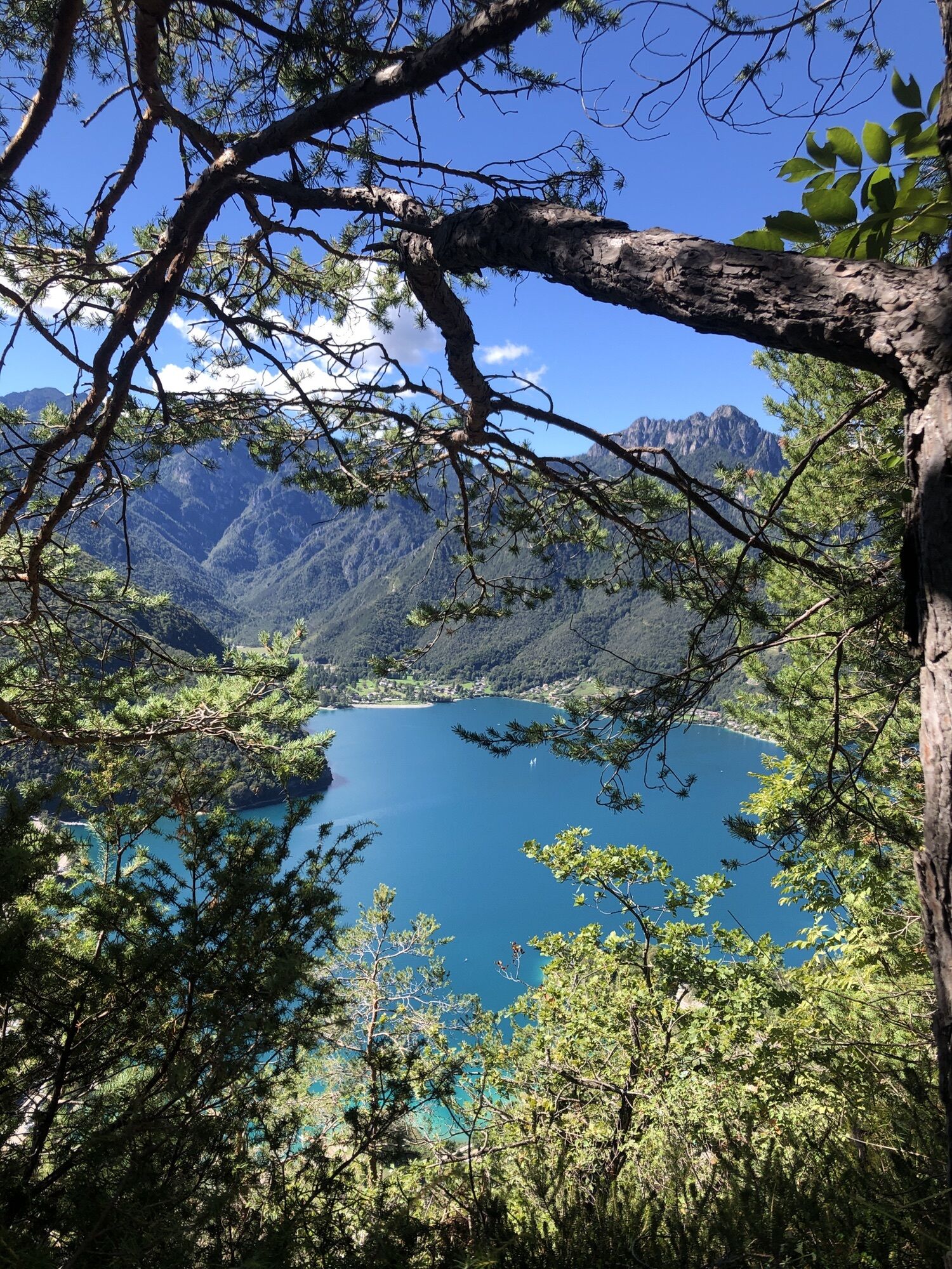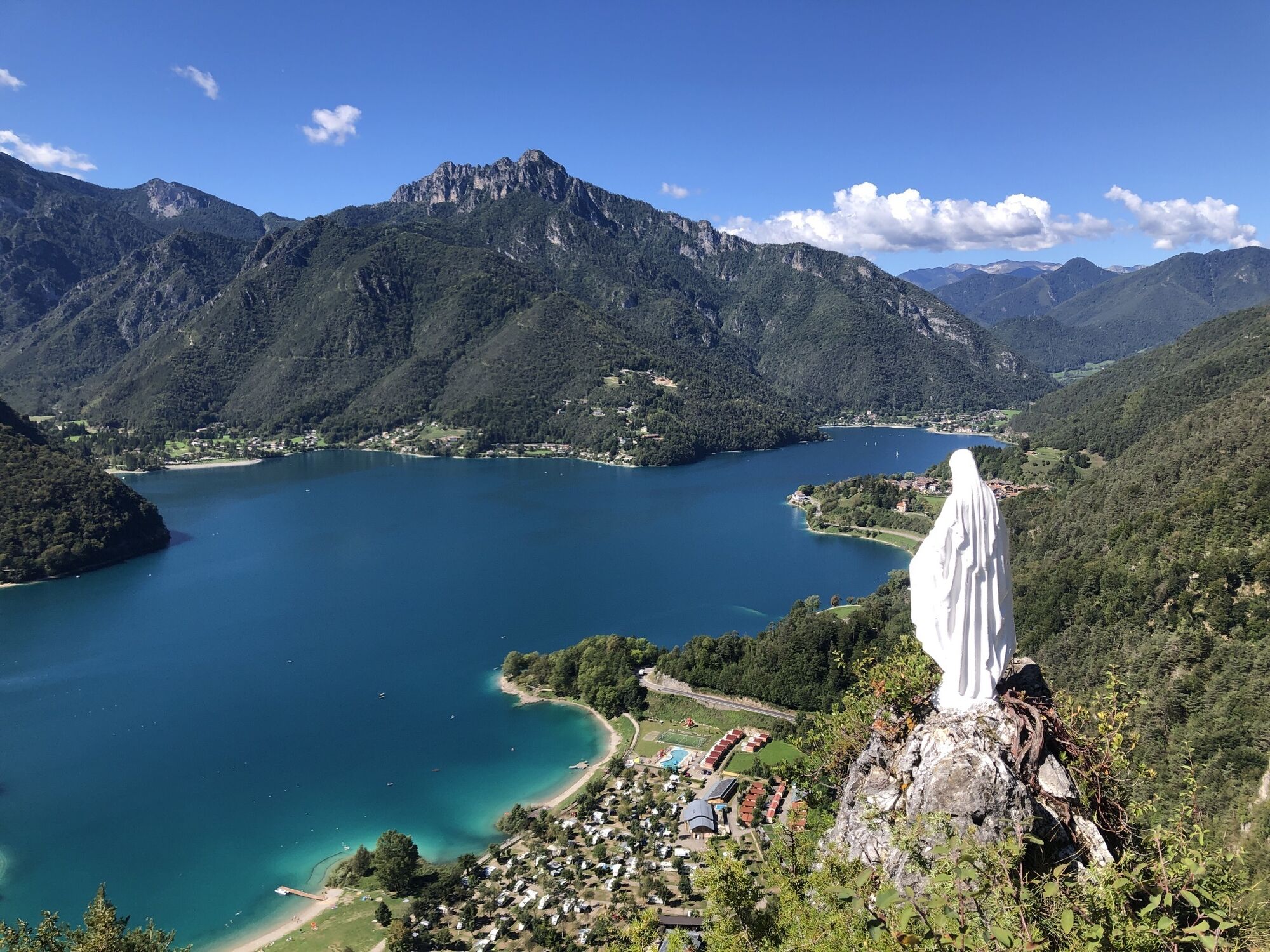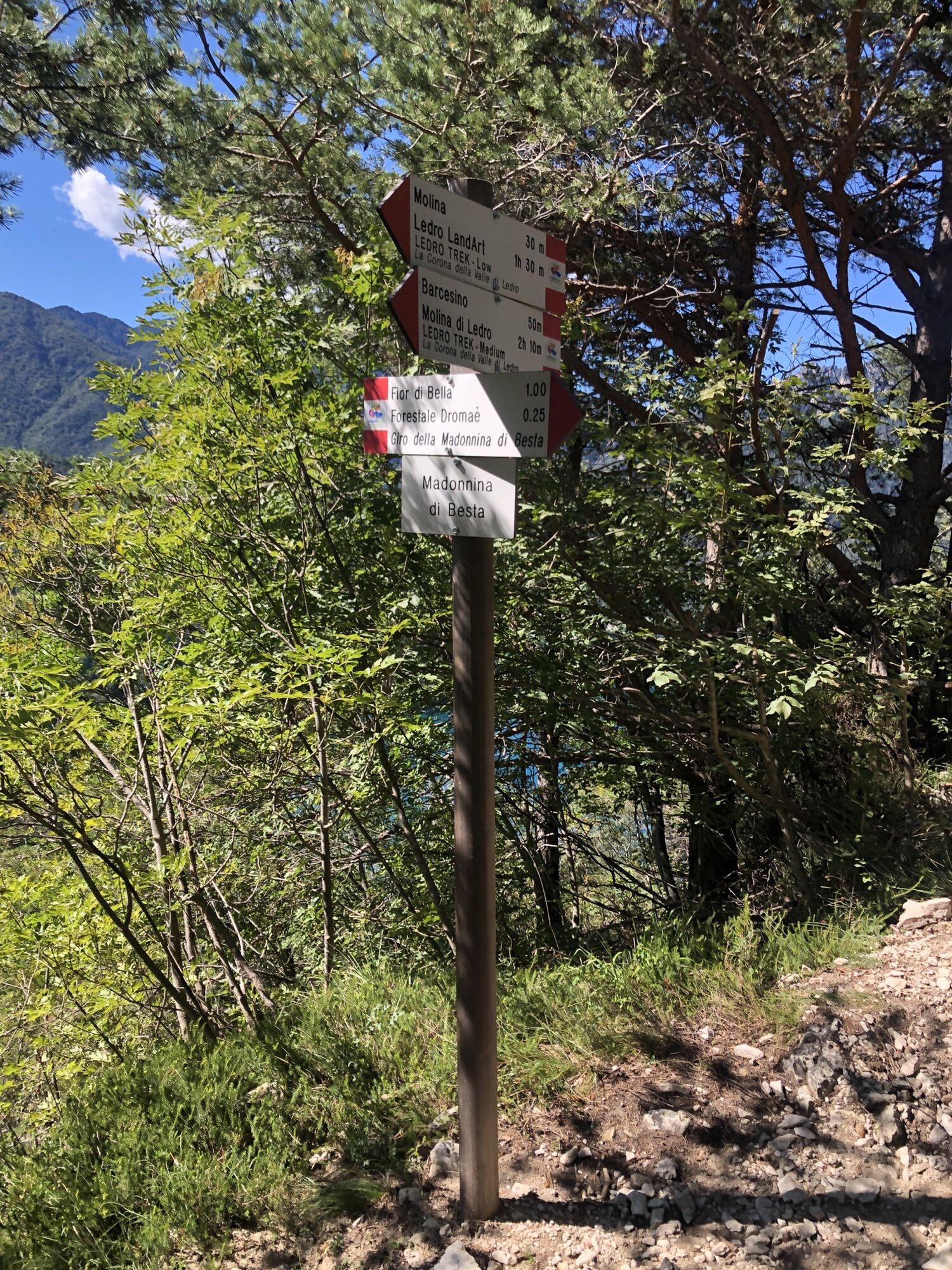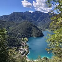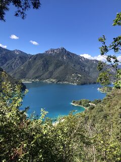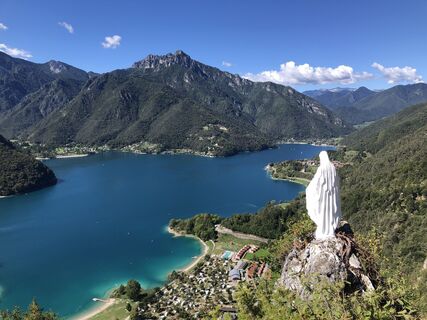 Via dei Colli einschlagen und sich links halten. Am Ende der asphaltierten Straße den kleinen Weg auf der Seite an einer kleinen Holzhütte rechts bergauf nehmen. Nach ca. 20 Minuten bergauf erreicht man die Madonnina di Besta (Abgrund ist abgesichert!). Zurück zum Pfad weiter bergauf bis zur Forststraße. Oben angekommen rechts schöner Ausblick zum ausruhen. Zurück auf Forstweg bergab. Nach einiger Zeit den Hinweistafeln links abbiegen Richtung Molina, sehr steil! Auf Seehöhe links abbiegen in die Via Belvedere und an der Seepromenade zurück.