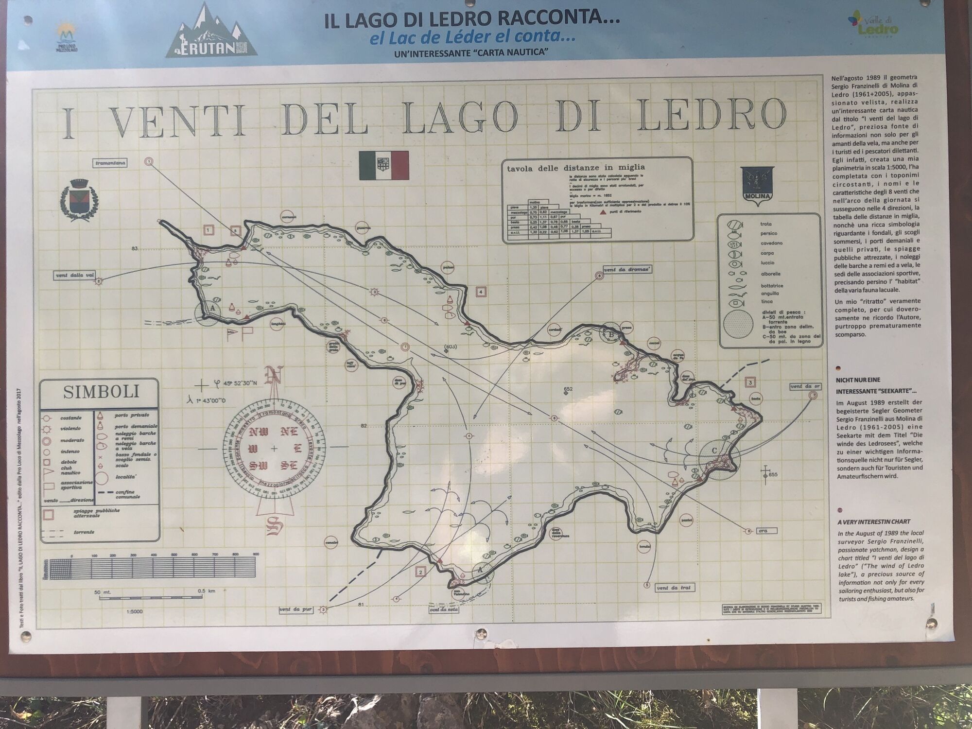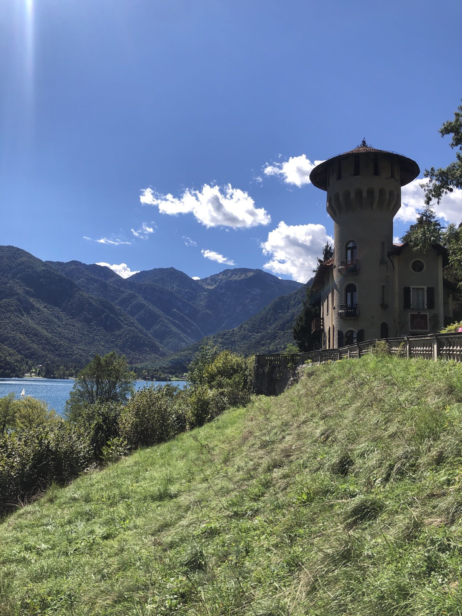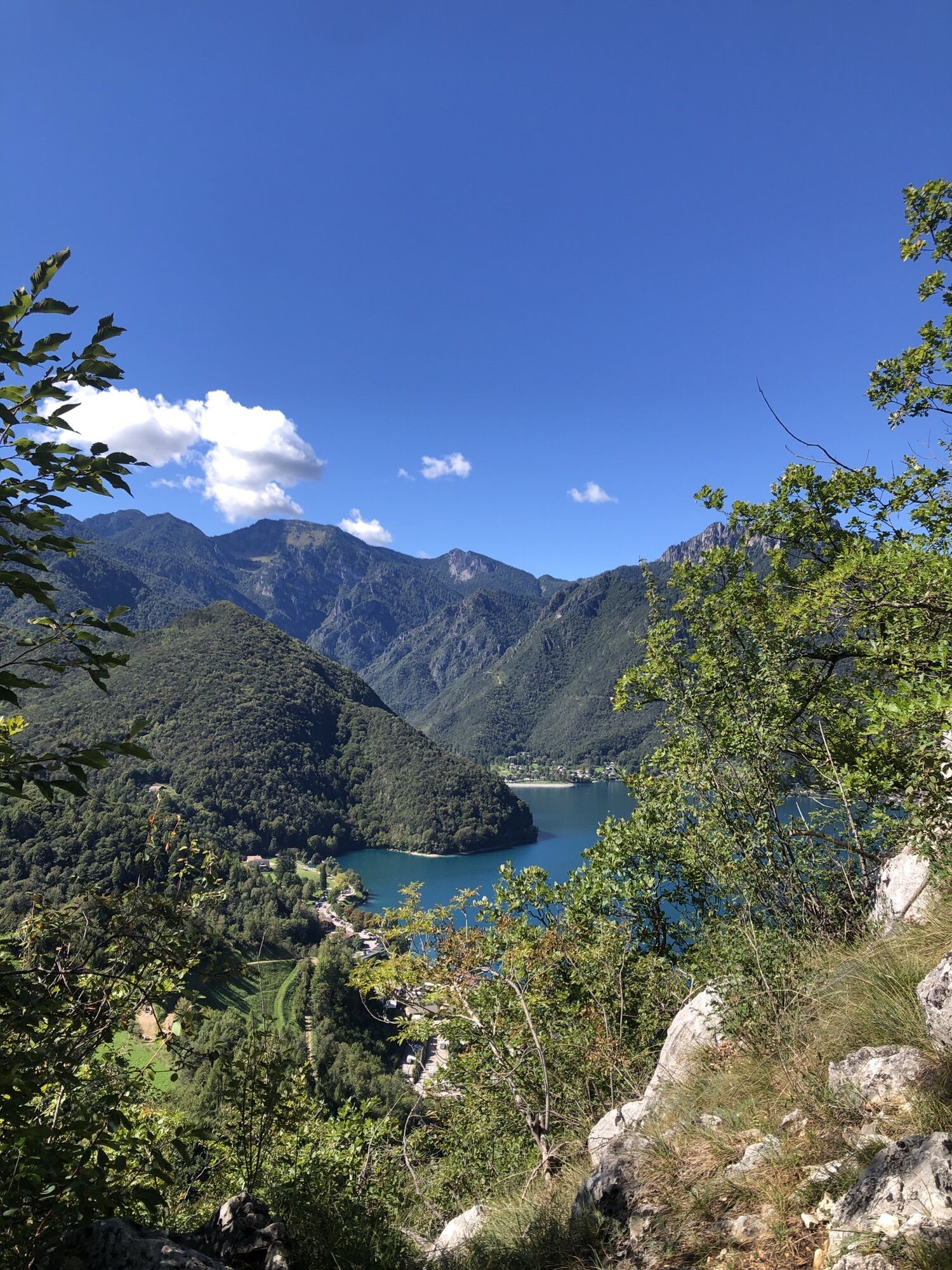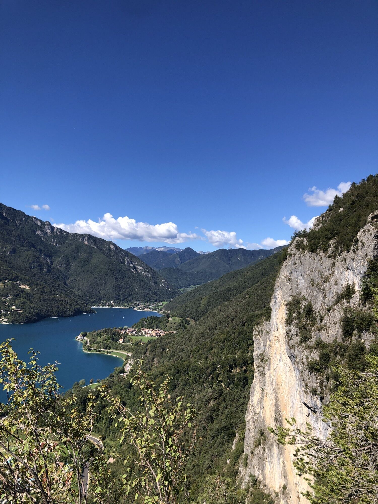 Via dei Colli einschlagen und sich links halten. Am Ende der asphaltierten Straße den kleinen Weg auf der Seite an einer kleinen Holzhütte rechts bergauf nehmen. Nach ca. 20 Minuten bergauf erreicht man die Madonnina di Besta (Abgrund ist abgesichert!). Zurück zum Pfad weiter bergauf bis zur Forststraße. Oben angekommen rechts schöner Ausblick zum ausruhen. Zurück auf Forstweg bergab. Nach einiger Zeit den Hinweistafeln links abbiegen Richtung Molina, sehr steil! Auf Seehöhe links abbiegen in die Via Belvedere und an der Seepromenade zurück.